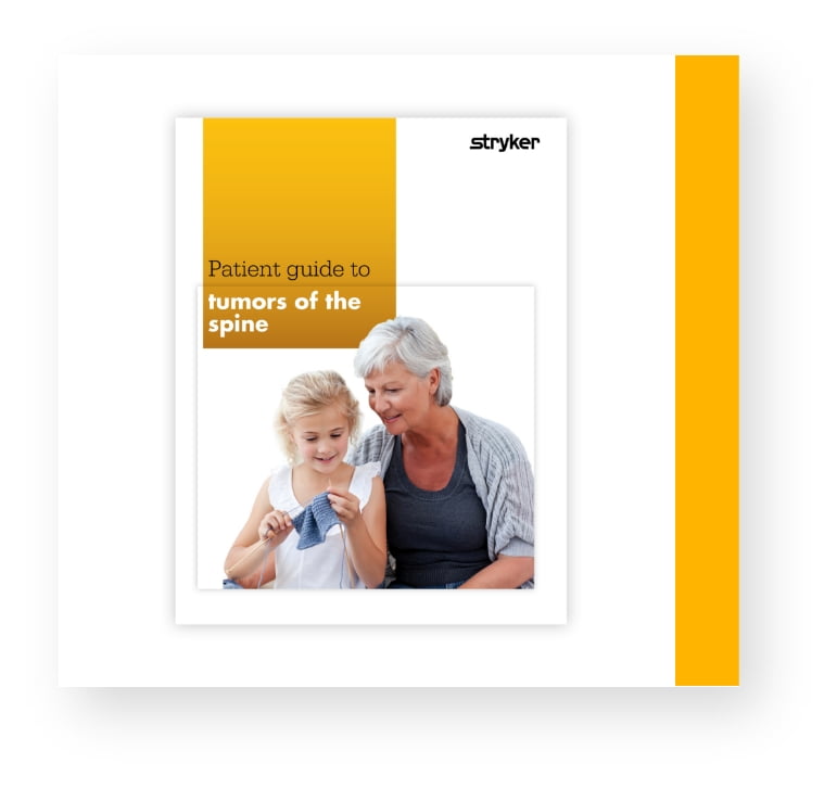 A tumor is a mass of abnormal tissue that can be found anywhere in the body.1 The spinal bones (vertebrae) are a site where tumors can occur in some people.2 Spinal tumors are most commonly secondary, or metastatic, meaning that they originate from a primary tumor elsewhere in the body and spread to the spine through the lymph nodes or bloodstream.3 In addition, spinal tumors can also form in either the vertebrae themselves or from the tissues that form the spinal cord and nervous system; these are known as primary spinal tumors. Occasionally, spinal tumors can become large enough that they put pressure on the spinal cord or nerves. If this happens, a variety of neurological symptoms, such as numbness or weakness in the arms or legs, can develop. Spinal tumors may also cause damage to or even lead to the collapse of one or more vertebral bodies.4 As a result, the tumor may put pressure on the spinal cord or nerves and/or cause pain either at the site or radiating down the arms or legs.2