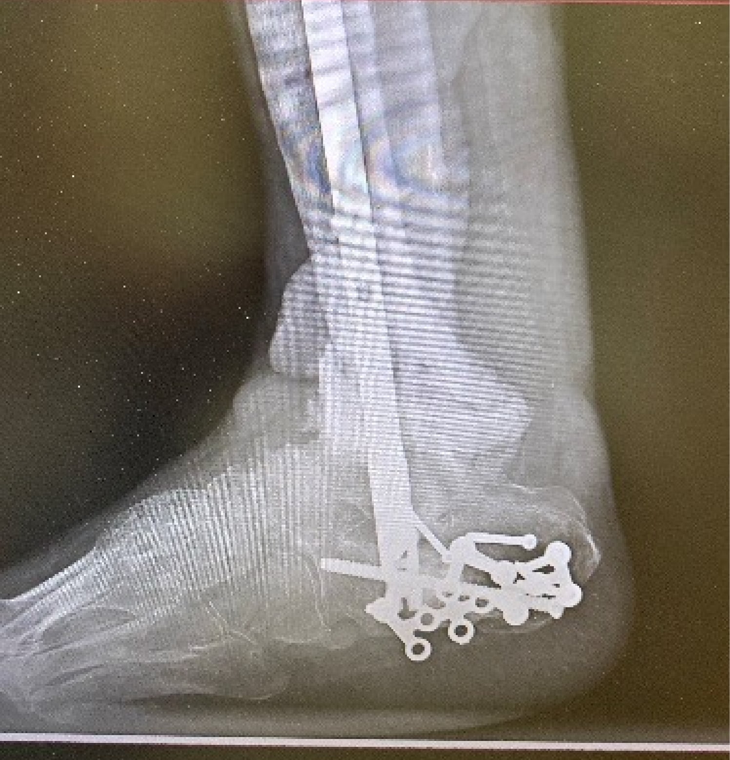 Then I had another complication when my bone was not fusing on its own. A piece of my fibula came out of place and started protruding from the skin, requiring yet another surgery. I was so heartbroken at this outcome that I was determined to move forward with the amputation. One last option was proposed to save my foot: it was recommended to insert a rod that would span from the heel to the mid tibia in order to reinforce the remaining bone. This procedure was especially complicated because I had shattered my calcaneus bone several years prior and now had metal holding it together. They were able to get around the metal in the calcaneus to insert the rod. I underwent a few more weeks of antibiotics to ensure there was no recurrent infection.