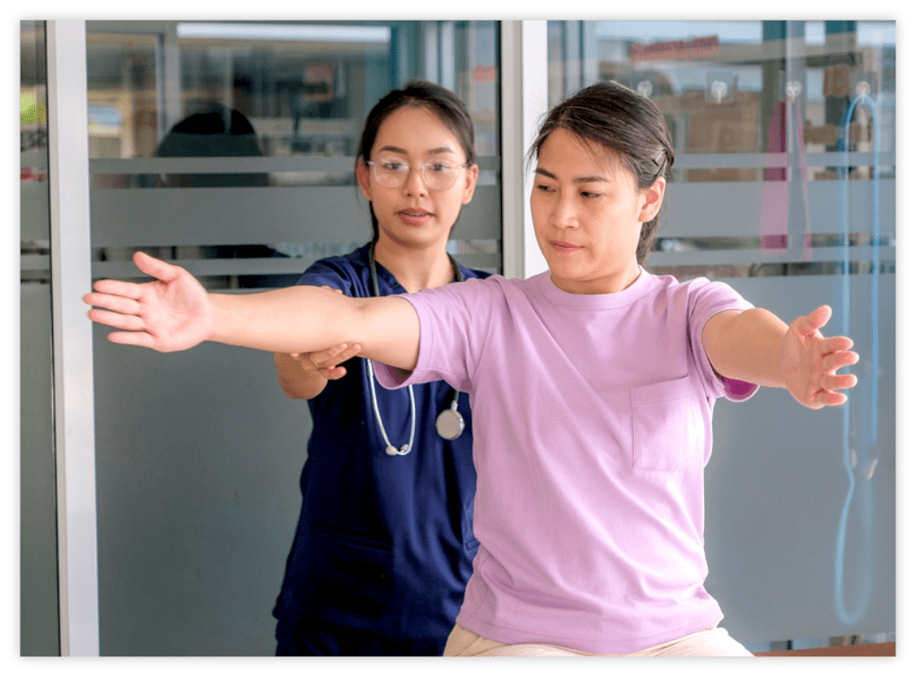 Physical therapists can help lessen your pain by teaching better posture or “form” for your day-to-day activities. Your physical therapist may recommend stretching and strengthening exercises, depending on your anatomy, joint functioning, and disease progression. They can teach you how to use assistive devices, like grabbers, zipper pulls, and long-handled shoe horns and bath sponges so you can reach for things that would otherwise cause you to stretch uncomfortably or beyond your current range of motion.